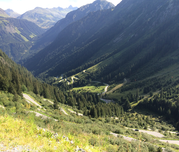 Aktivpark Montafon - Schwimmbadstraße - Zelfenstraße - Bödmenstein - Mauren - Badmunt - St. Gallenkirch - Gortipohl - Gaschurn - Partenen - Mautstelle - Silvretta-Hochalpenstraße - Vermuntsee - Silvrettasee - Mautstelle Wirl/Galtür - Kopssee - Ganifer - Partenen - Gaschurn - Gortipohl - St. Gallenkirch - Schruns - Aktivpark Montafon