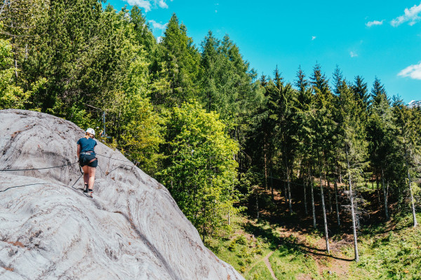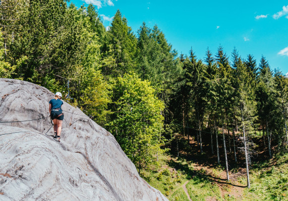 Begleitet von einem Montafoner Bergführer ist der leicht erreichbare Klettersteig am Staubecken Latschau ideal für Familien, die gemeinsam erste Erfahrungen am Klettersteig sammeln möchten. In den Schwierigkeitsgraden A bis C üben Kinder und Erwachsene den sicheren Umgang mit dem Klettersteigset, ein Ausstieg ist jederzeit möglich. Am Nachmittag zeigt sich der Fels hier besonders sonnenreich, begleitet vom Blick auf die nahe Zimba, das „Matterhorn des Montafon“. Der Programmpunkt lässt sich ideal mit einem Vormittag auf Ski am Bewegungsberg Golm verbinden.