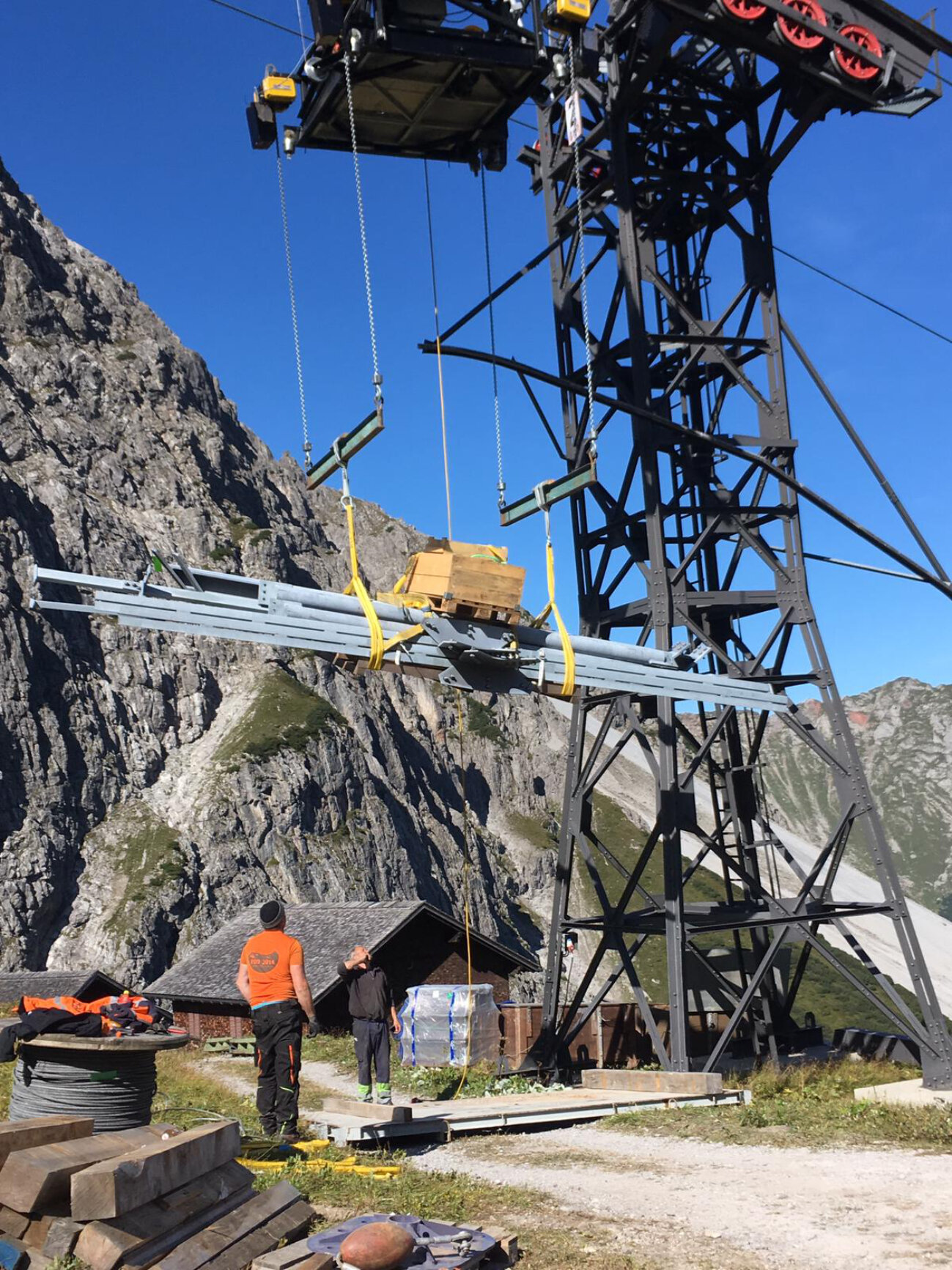 Nachdem die letzten Gäste Mitte September 2019 die Fahrt zum Lünersee genossen, ging es Schlag auf Schlag. Materialtransporte wurden durchgeführt, Demontagearbeiten begonnen und zu guter Letzt das Seil gekappt. Mit der Kappung des Tragseils verschwand nicht nur eines der letzten Überbleibsel der alten Bahn, sondern auch die vorläufig einzige Transportverbindung zum Lünersee. Für den Bau bedeutete das: Ab sofort wird alles zu Fuß oder mit dem Hubschrauber transportiert!