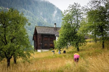 Auch zahlreiche traditionelle Objekte in der regionalen Kulturlandschaft, etwa Trockenmauern, Lawinenschutzbauten und Steinbrücken, liegen auf der ansprechenden Dorfrunde.