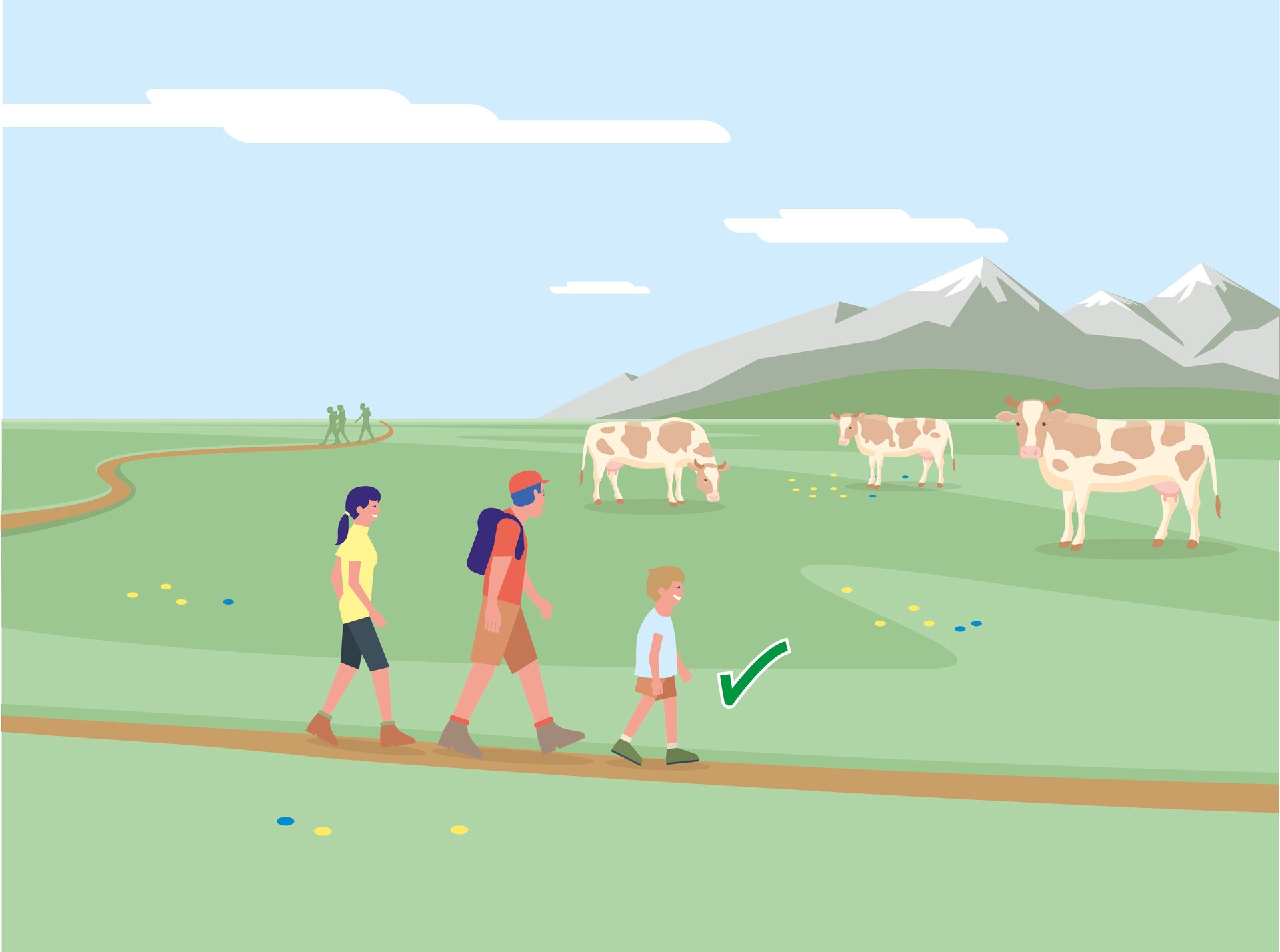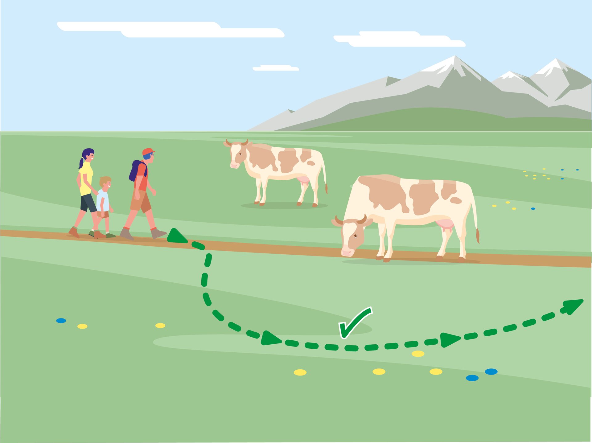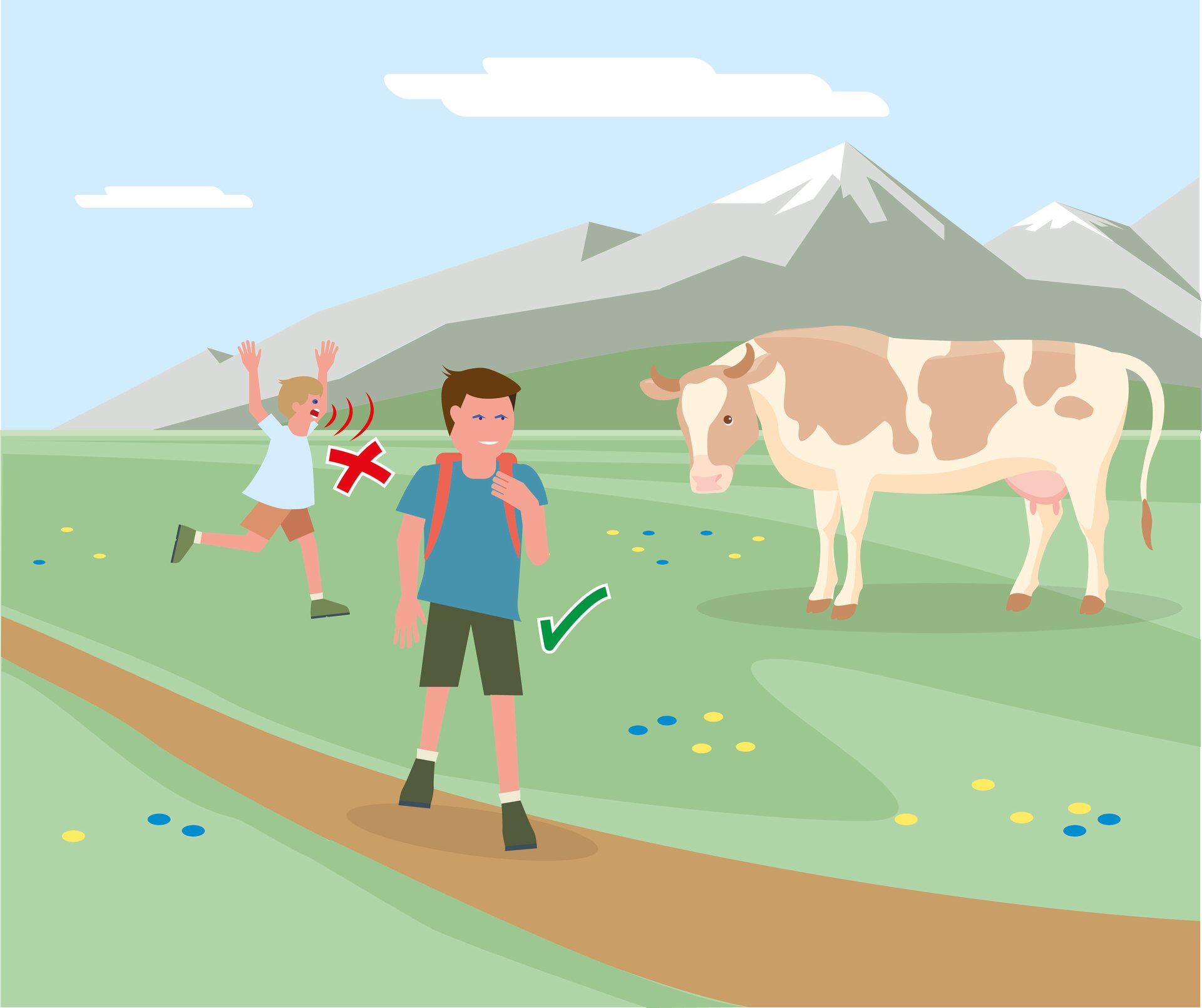 • 1. Kontakt zum Weidevieh vermeiden, Tiere nicht füttern, sicheren Abstand halten!