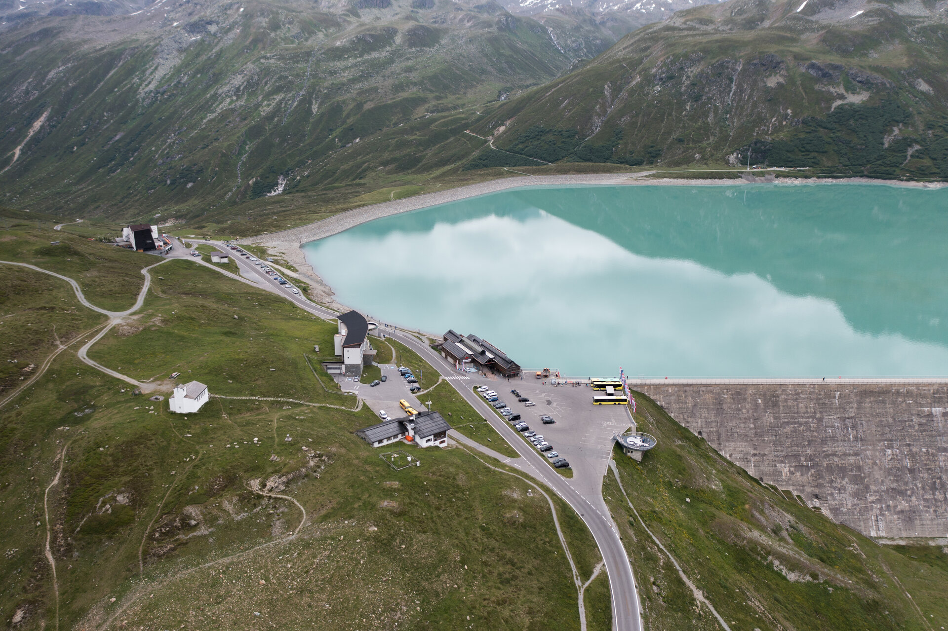 Apropos: Die haben hier sowieso einiges zu tun. Denn nach kurzer Zeit befinden wir uns schon auf der Staumauer, deren Hauptwand mit einer Kronenlänge von 430 Metern und einer Höhe von 80 Metern eines der ersten Highlights dieser Wanderung ist. Weiter des Weges folgt die ebenso imposante 31 Meter hohe und 140 Meter lange Seitenmauer. Wie oft wir nach den ersten Minuten schon Fotos mit dem Handy geknipst haben, weiß ich nicht mehr. Es sind viele. Sehr viele.