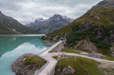 Wir biegen nicht ab, sondern spazieren weiter den Uferweg entlang und blicken nun Richtung Silvretta-Bielerhöhe. Dort sehen wir in weiter Ferne unseren Ausgangspunkt und halten inne. Der zweistündige Rundweg um den Stausee mit seinen sanften Anstiegen und den gut angelegten Pfaden bietet Schritt für Tritt viele Gelegenheiten, das alpine Paradies zu bestaunen.