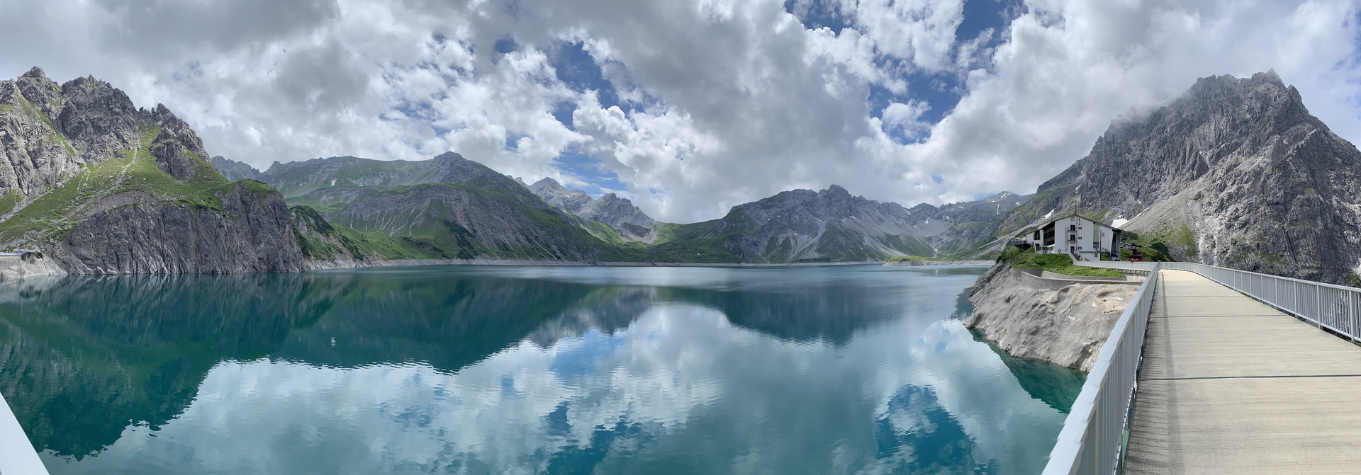 Die Etappe startet auf der Staumauer und Du umkreist der restlichen Teil des Lünersee. Wieder vorbei an der Alpe Lünersee führt dich der Weg hinauf zum Gafalljoch (2.239 m). Herzlich Willkommen in der Schweiz. In weiter Ferne kannst du bereits von hier die Carschinahütte sehen.