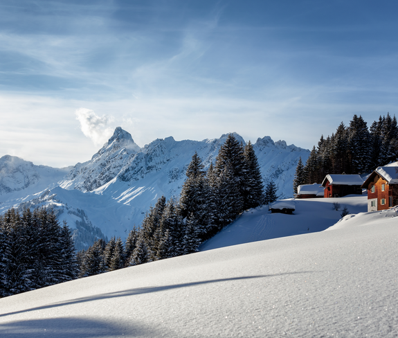 Now walk left along the lake and continue uphill on the Almeinweg towards the alpine hut. Now go left, continuing uphill. The next landmark is the well-hidden hunting lodge, which is also the highest point of the snowshoe hike. In good weather and clear visibility, you have a wonderful panoramic view from here. From here, the path leads comfortably and gently downhill to the Alpengasthaus Rellseck. The Alpengasthaus Rellseck invites you to a refreshment in a great setting. Before starting the descent, it is worth changing clothes at the guesthouse.