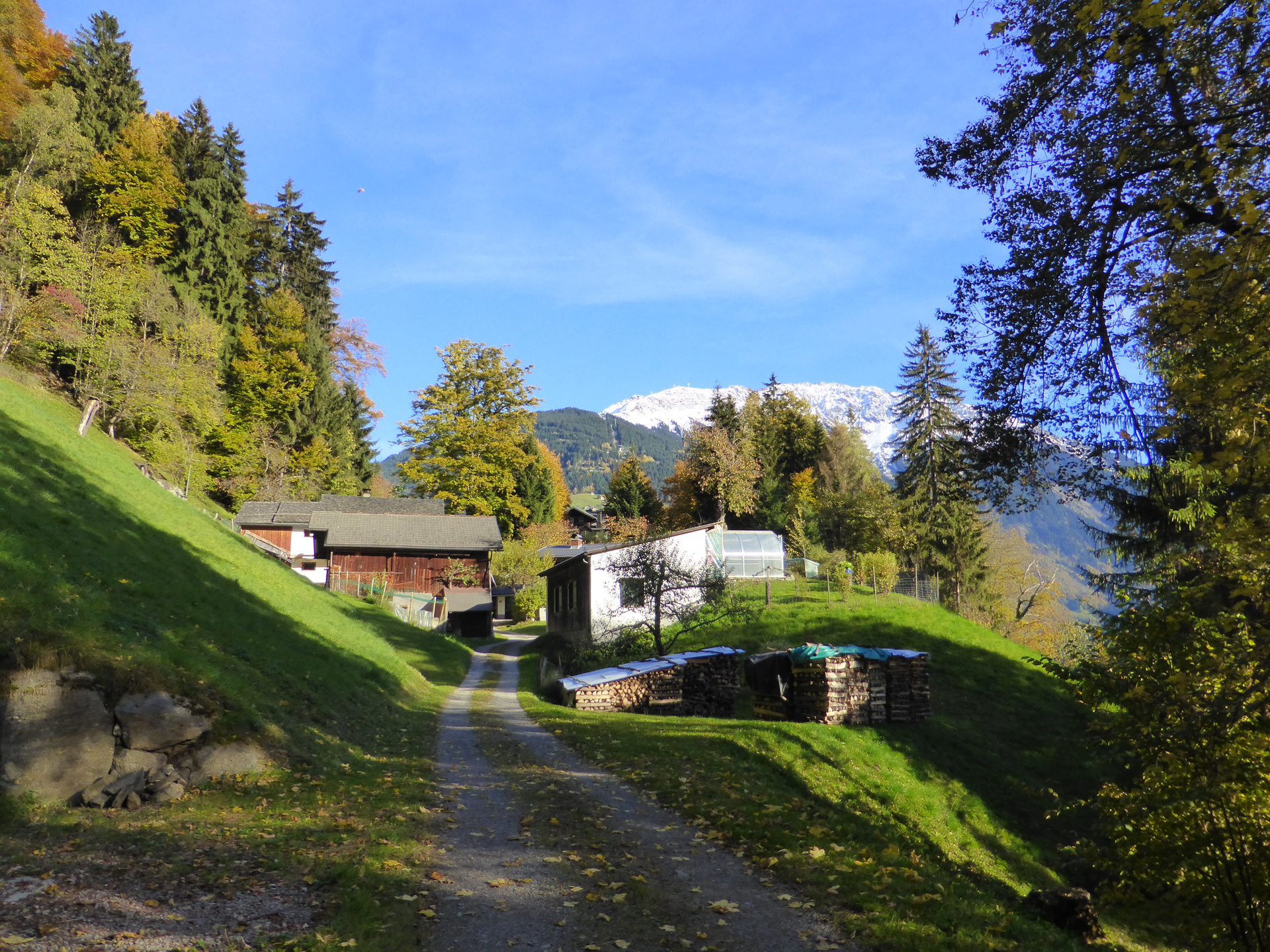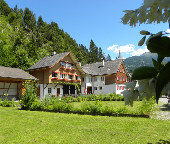The Gauenstein route starts in the town center of Schruns. At the parish church St. Jodok, the pedestrian zone slopes slightly downward until you reach Silbertalerstraße. There, you cross the street and walk left past the store Zimba Moden and shortly afterwards cross the bridge and continue straight ahead. You walk past Hotel Krone and a few meters later reach a small chapel (Litz chapel) and the junction leading up to Bartholomäberg. You follow Montjolastraße to the first curve, where you turn left and follow the driveway. After a short forest section, you reach a single house with a great location via a meadow path that slopes slightly upward. Then the path goes briefly downhill and you pass more houses. The forest road then continues flat and after about 5-10 minutes you reach Gauenstein Monastery.