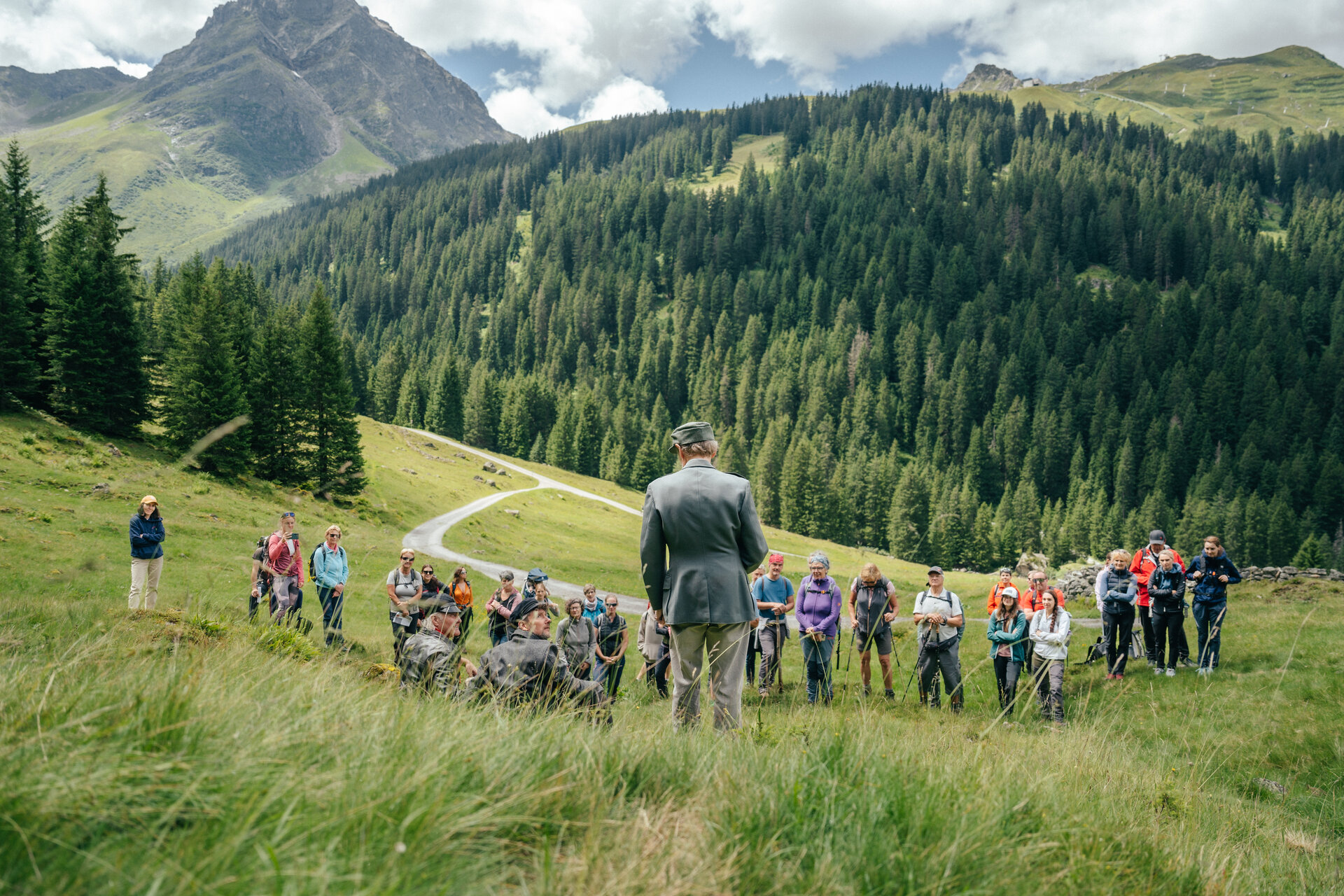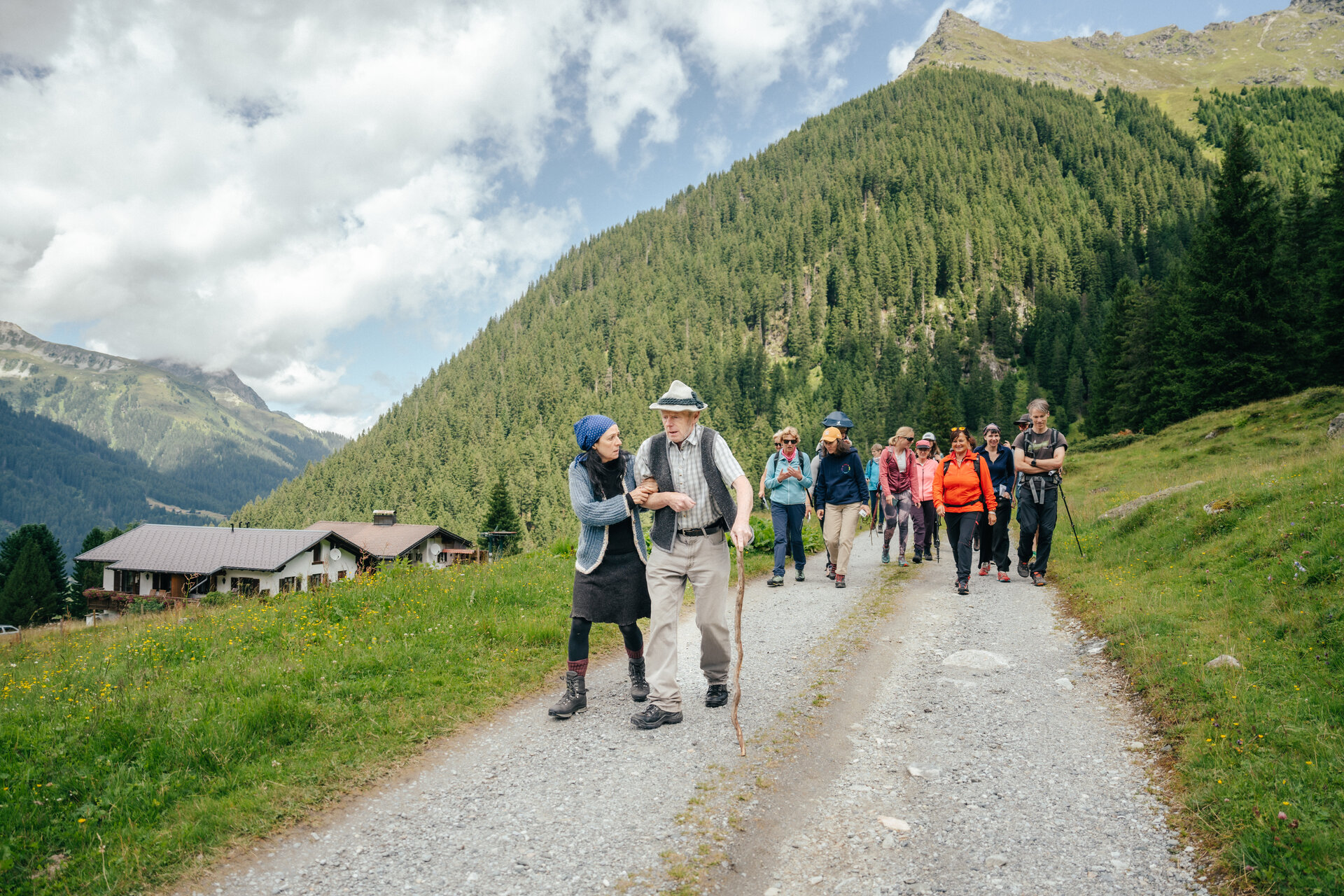 Vom Luftkurort Gargellen, ab den 1890er Jahren ein Ziel für Sommerfrischler, sind es übrigens nur zwölf Kilometer ins nahe Davos, wo Thomas Mann berühmter Roman „Zauberberg“ spielt. Hier in Gargellen nennen die Einheimischen die markante, 2.770 Meter hohe Madrisa gern „unser Zauberberg“. Erstaunliche Parallelen und so überrascht es nicht, dass der Theaterwanderer hier auf fiktive Figuren wie Hans Castorp oder Oberin von Mylendonk trifft, die Thomas Manns Werk entsprangen. Auch reale historische Persönlichkeiten spielen im neuen Stück „Grenzerfahrungen“ eine Rolle, wie die Alpinistin Rose von Rosthorn-Friedmann, Elisabeth Förster-Nietzsche und der Bludenzer Fabrikant Julius Gassner, damaliger Mitbesitzer des Hotels Madrisa in Gargellen.