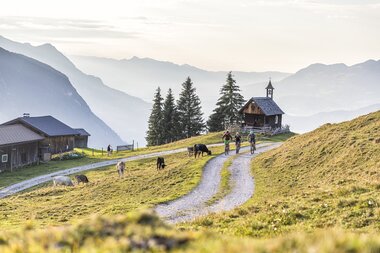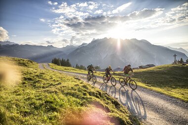 Eine verblockte ausgewaschene Querung im Singletrail bringt auch die besten Biker unter uns an ihre Grenzen. Wir steigen ab und schieben eine kurze Passage. Doch die Mühe lohnt sich: Am Scheitelpunkt des Trails, bevor er sich flowig in Richtung Tal schlängelt, genießen wir nochmals einen traumhaften Blick ins Klostertal. Wir senken den Sattel etwas ab für mehr Kontrolle auf dem Bike und begeben uns in Richtung Tal. Jeder fährt den Singletrail in seinem individuellen Tempo. Bei gelegentlichen Pausen, um die Handgelenke zu entlasten, kommen die Gäste aus dem Schwärmen nicht mehr raus. Nach dem letzten Teilstück des Single Trails fahren wir vorbei am traumhaft gelegenen Fritzensee zurück ins Tal. Alle Gäste sind glücklich und der Meinung, dass sie nach solch einem Tag mit Sicherheit gut schlafen werden. Ich hingegen bin glücklich darüber, dass ich alle Gäste wieder gesund zurück ins Tal begleitet habe. Mein persönliches Tagesziel habe ich erfüllt. Nachdem ich mein Mountainbike für den nächsten Tag auf Vordermann gebracht habe, merke auch ich, dass ich nach solch einem Tag gut schlafen werde. Ich gehe früh ins Bett, denn schon am nächsten Morgen steht für mich die nächste Tour auf dem Programm.
