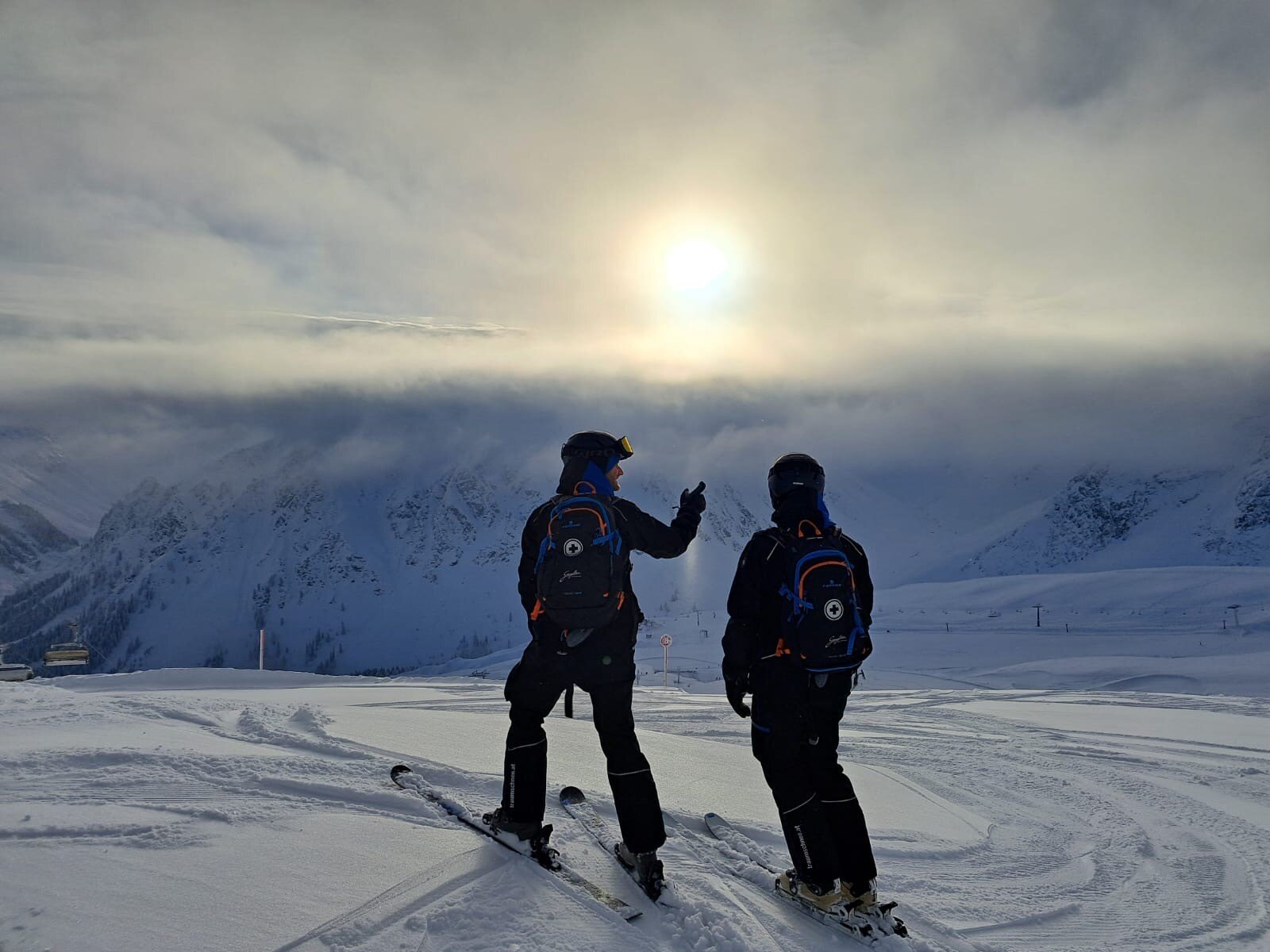 Um 8:00 Uhr ist das gesamte Pistenteam am Berg im Einsatz. Mit Skiern kontrollieren die Mitarbeitenden sämtliche Pisten, prüfen Schneeverhältnisse und mögliche Gefahrenstellen. Erst wenn alle Kontrollfahrten abgeschlossen sind, werden ab 8:30 Uhr die Anlagen und Lifte im Skigebiet Gargellen für den Skibetrieb freigegeben.