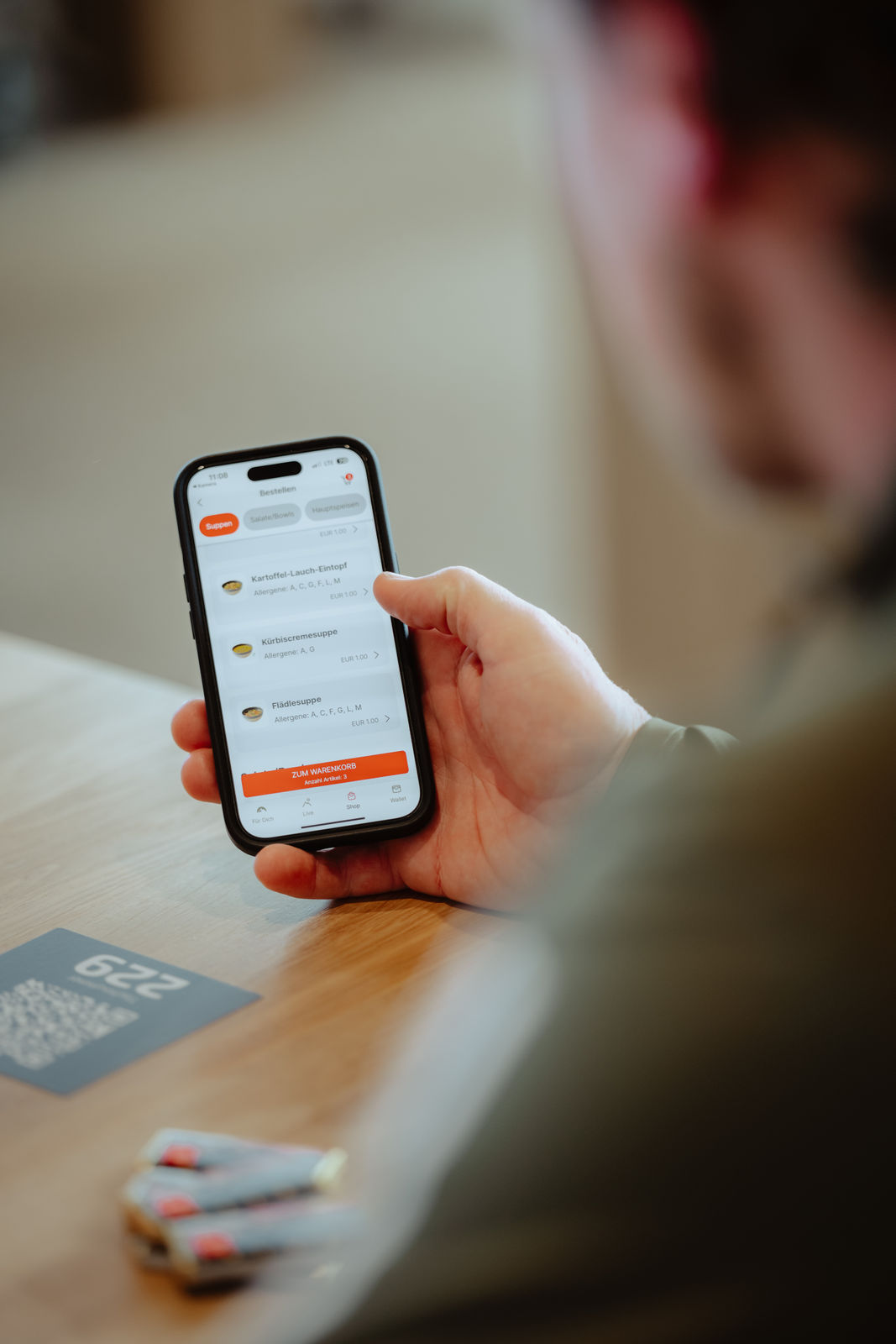 You sit down at a table, order and pay conveniently via the app or website, and your order will be brought to your table.