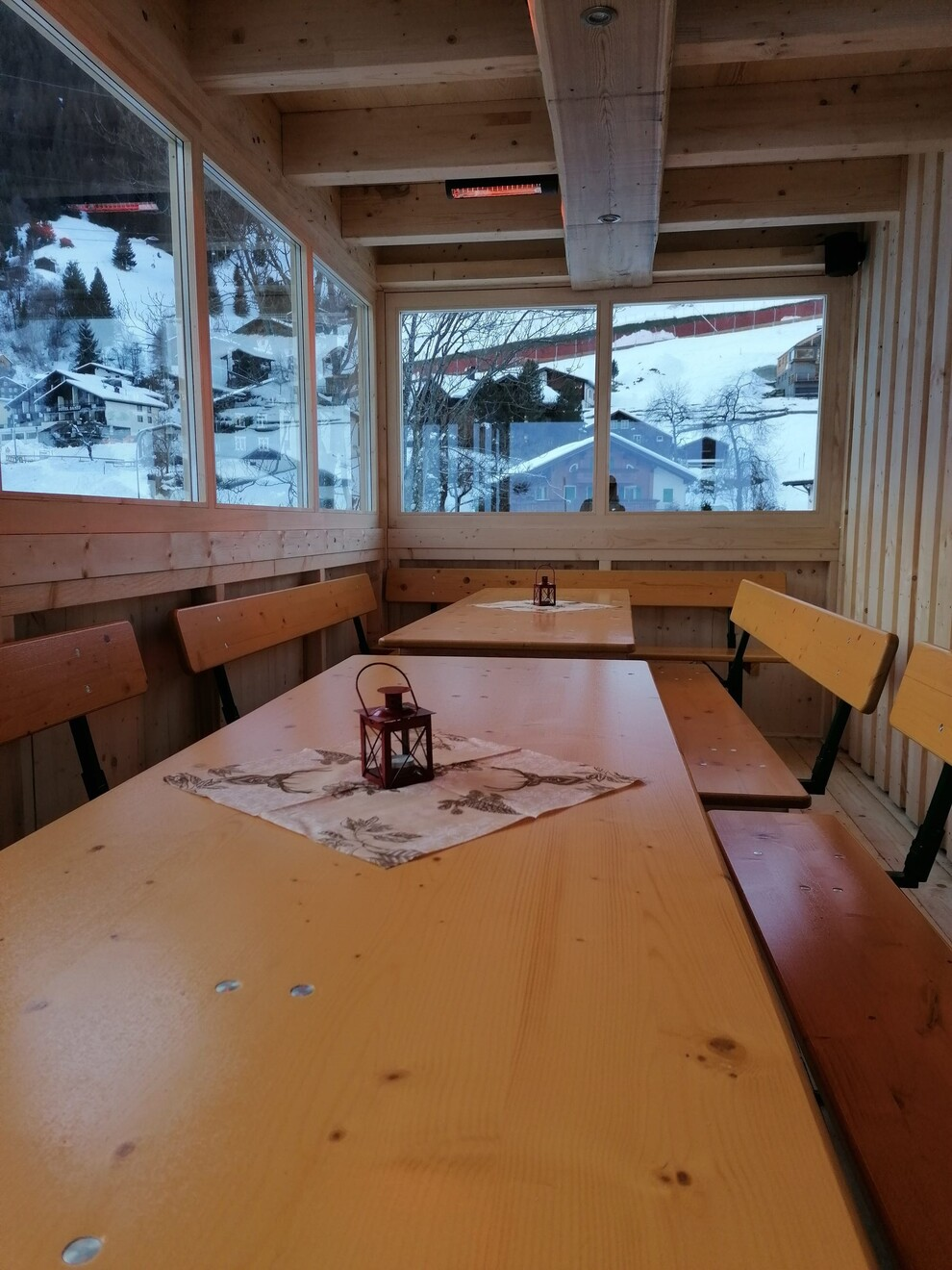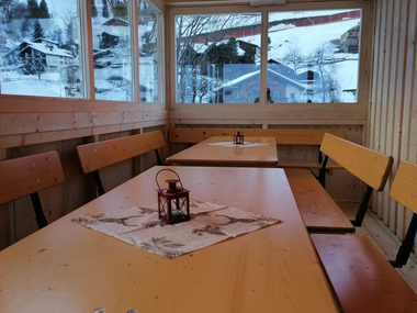On our inviting, covered terrace, you can relax and enjoy the fresh mountain air while we spoil you with everything your heart desires: from traditional snacks and juicy burgers to hot mulled wine.