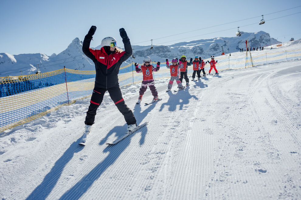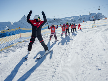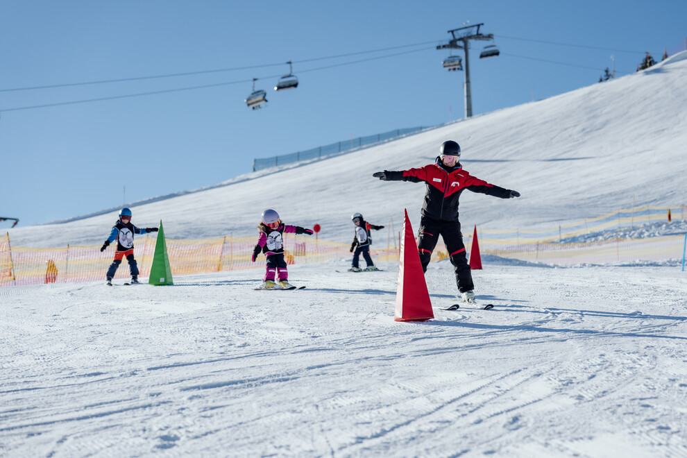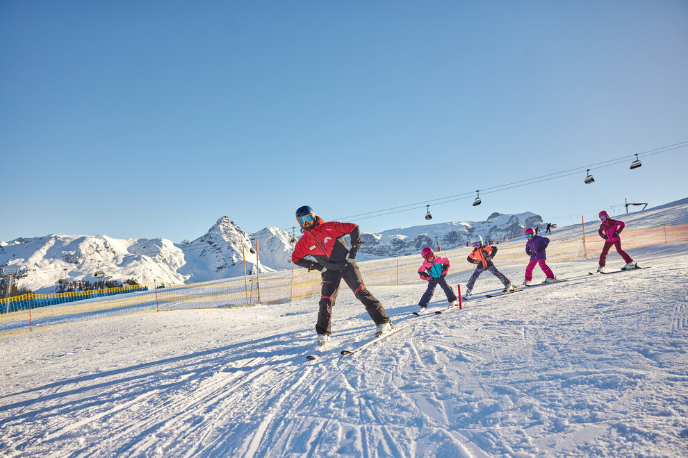 The family friendly ski school at the Golm