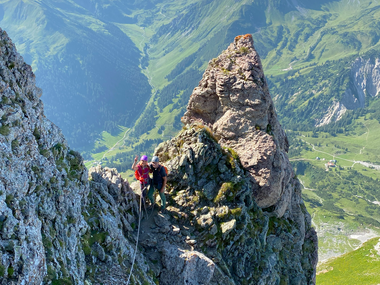 A real challenge in the Rätikon is the ascent of Zimba. The 2,643 metre-high mountain has fascinated mountaineers for generations. Zimba is also often described as the Montafon’s Matterhorn because of its unusual shape. There is no hiking trail or via ferrata up to the summit, and it takes courage, freedom from vertigo and fitness to conquer the demanding rock tour with degree of difficulty III.
